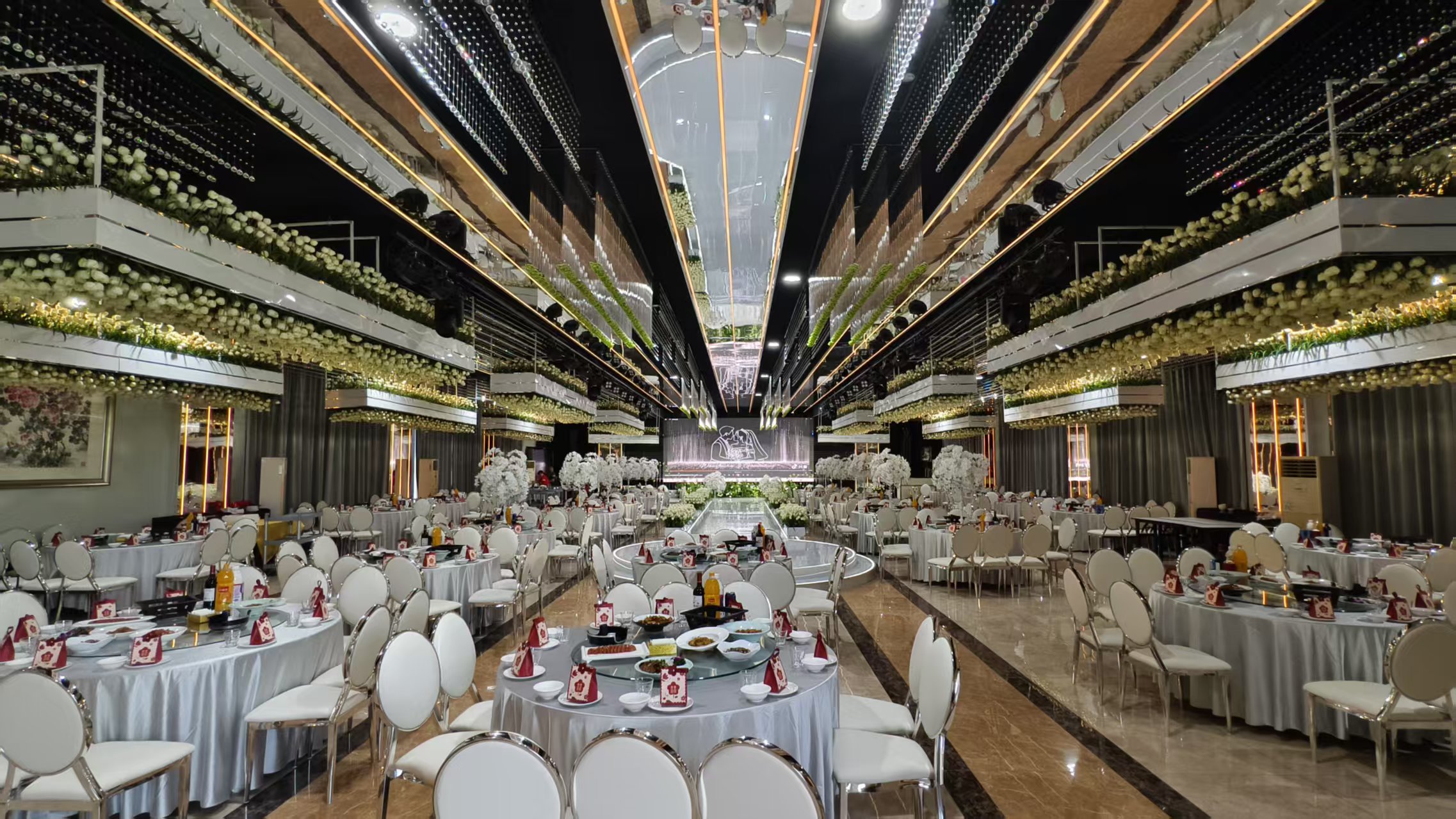 尤其主打五星标准水晶厅,场地方正无柱,大气敞亮:可承接800-1200人会议,就餐容量600-700人;配备55平米超大LED显示屏、专业舞台灯光、全套多媒体设备,全场免费WiFi覆盖,设备调试顺畅、售后有保障,高质量保障会议流程不翻车。
